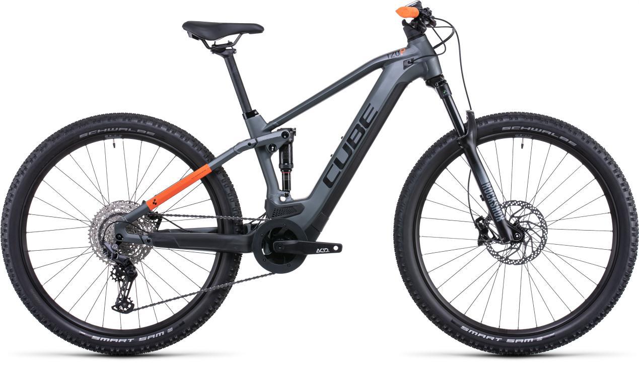 · rama Aluminium Superlite, Gravity Casting Technology, Efficient Comfort Control, FSP 4-Link, Agile Comfort Geometry, Boost 148, Full Integrated Battery, Kickstand/Fender/Carrier Mounting Points · wymiary Size Split: 27.5: XS (15"), S (17") // 29: M (18"), L (20"), XL (22") · widelec RockShox Recon Silver RL Air, Tapered, 15x110mm, eMTB Approved, 120mm, Lockout · tłumik RockShox Deluxe Select, 185x55mm (27.5: 165x45mm), Rebound Adjust, Trunnion Mount · wyposażenie tłumika Top: 54mm Trunnion Mount, Bottom: 30x8mm · układ napędowy Bosch Drive Unit Performance CX Generation 4 (85Nm) Cruise (250Watt) · akumulator Bosch PowerTube 625 · wyświetlacz Bosch Purion · ładowarka Bosch 2A · układ hamulcowy Shimano BR-MT420, Hydr. Disc Brake (203/203; XS/S:203/180) · tylna przerzutka Shimano Deore RD-M6100-SGS, ShadowPlus, 12-Speed · manetki Shimano Deore SL-M6100-IR, Direct Attach, Rapidfire-Plus · korba ACID E-Crank, 170mm, 38T · kaseta Shimano Deore CS-M6100, 10-51T · łańcuch Shimano CN-M6100 · przednia piasta Shimano HB-MT400-B, 15mm, Boost, Centerlock · piasta tylna Shimano FH-MT410-B, 12mm, Boost, Centerlock · obręcze CUBE EX30, 32H, Disc, Tubeless Ready · opony Schwalbe Smart Sam, Active, 2.6 · Mostek CUBE Performance Stem E-MTB, 31.8mm · kierownica Newmen Evolution SL 318.25, 760mm · uchwyty Natural Fit All Terrain · sztyce podsiodłowe CUBE Performance Post, 30.9mm · zacisk sztycy CUBE Screwlock Semi Integrated, 34.9mm · siodełka Natural Fit Sequence · łożyska sterowe 27.5: ACROS AZX-1032, BlockLock 120°, Top Zero-Stack 1 1/2" (ZS 56mm), Bottom Zero-Stack 1 1/2" (ZS 56mm) // 29: ACROS AZX-1030, Top Zero-Stack 1 1/2" (ZS 56mm), Bottom Zero-Stack 1 1/2" (ZS 56mm) · pedały ACID PP MTB · waga 25,4 kg · kolor lunar´n´grey · Art. L.p. 535062